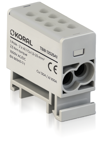 | Grey | TBB 1300A1 | 1 | 2×25 mm², 2×16 mm² | 2,5–2 Nm | 130(Cu), 100(Al) |