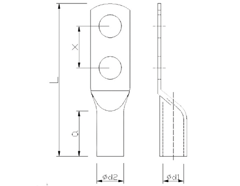 Product Code Section Area (mm²) Bolt Inner (d2) (mm) Outer (d1) (mm) Length (L) (mm) Cable Length (a) (mm) Hole Distance (x)